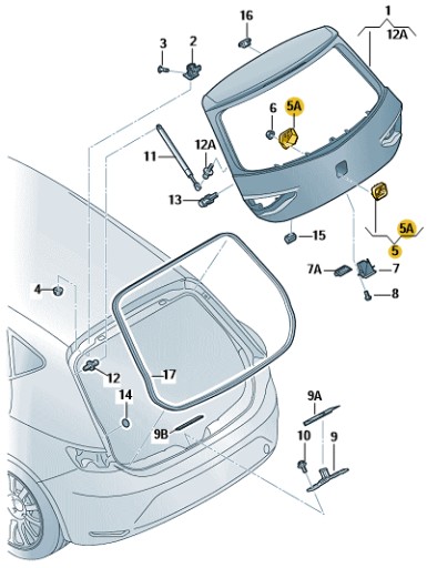 РУЧКА КРЫШКИ БАГАЖНИКА СИДЕНЬЕ ЛЕОН 5F0827565D ASO