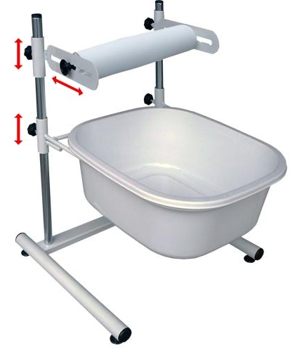 Bardzo wygodny brodzik z płynną regulacją wysokości miski i podnóżka (dodatkowo podnóżek można regulować w poziomie). Konstrukcja podstawy umożliwia bliskie dosunięcie do taboretu lub fotela. Brodzik posiada podnóżek z miękką tapicerką mocowaną na rzep.