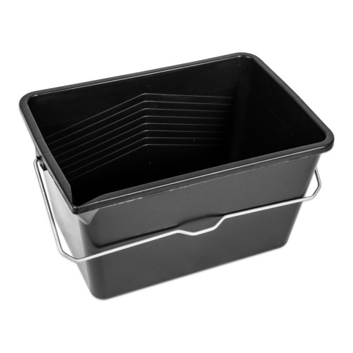 DZIĘKI PROSTOKĄTNEMU KSZTAŁTOWI MOŻNA WYGODNIE ZACZEPIĆ NA JEGO BRZEGU KRATKĘ MALARSKĄ PRZEZNACZONĄ DO ODCISKANIA WAŁKA.W JEDNYM Z JEGO ROGÓW UKSZTAŁTOWANE ZOSTAŁO PRZETŁOCZENIE POZWALAJĄCE NA WYGODNE PRZELEWANIE CIECZY.