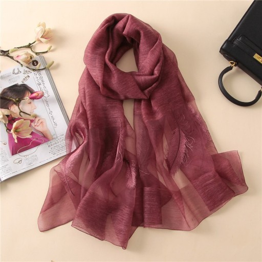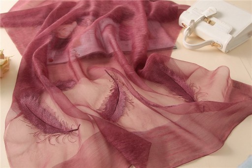 Oryginalny damski szal jedwabny HAFTY PIÓRA