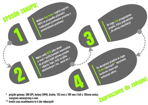 1) Wyślij nam materiał: zdjęcia, logotypy, tematyka pocztówki etc;
