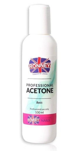 Ronney Professional Acetone to niezbędny płyn do rozpuszczania i usuwania tipsów, ozdób, oklein, mas i akrylu oraz do usuwania lakierów hybrydowych. Doskonale rozpuszcza i ułatwia usunięcie starego lakieru hybrydowego,a także tradycyjnego.
