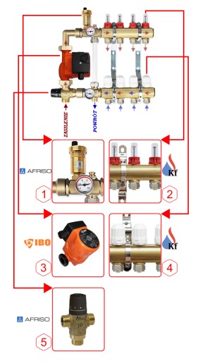 ROZDZIELACZ 3 OBWODY DO OGRZEWANIA PODŁOGOWEGO Z BYPASSEM Z ZESTAWEM MIESZAJĄCYM