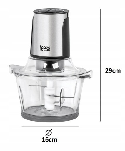 Chcesz jeszcze bardziej ułatwić sobie prace kuchenne? Przestań marnować czas na siekanie produktów zwykłym nożem – teraz zrobi to za Ciebie rozdrabniacz Teesa TSA3227! Wypróbuj go, a szybko odkryjesz, że jest on tym, czego dotychczas brakowało Ci w czasie przygotowywania obiadów czy deserów. Dzięki mocy maksymalnej 400 W oraz 2 trybom prędkości i 4 wykonanym ze stali nierdzewnej dwupoziomowym ostrzom rozdrabniaczem Teesa szybko posiekasz zarówno twarde, jak i miękkie produkty spożywcze.