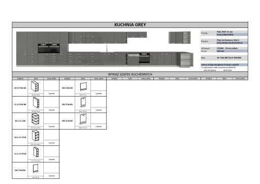 Możliwość skonfigurowania kuchni według własnego gustu i preferencji. Tabela poniżej przedstawia dostępne szafki oraz ich wymiary.