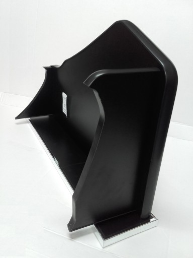 przedmiotem aukcji jest półka środkowa do NAJNOWSZEJ Scanii "S" oraz do nowego modelu "R" od 2016 r. wyłożona czarnym welurowym dywanikiem, z frezowanymi stopkami i niklowanym napisem.