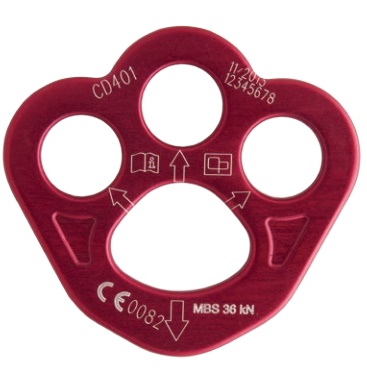 Wyposażona w duży pojedynczy główny punkt wpinania i trzy otwory o średnicy 20 mm do wpięcia zatrzaśników.