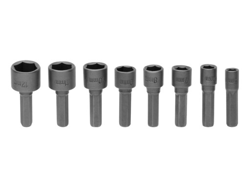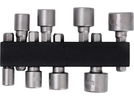 Nasadki do śrub, wkrętów itp. wykonane ze stali CRV. Gniazdo mocno namagnesowane. W zestawie organizer.