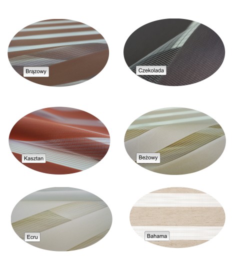 Nowatorskie podejście w zakresie zaciemniania wnętrz prezentują rolety Dzień Noc. Jest to model wykorzystujący dwa rodzaje tkanin – mniej i bardziej przepuszczającą promienie słoneczne. Naprzemienne ich ułożenie sprawia, że możliwości regulacji natężenia światła są bardzo duże – od niemal pełnego dostępu promieni aż do całkowitego zaciemnienia. Posiadamy w ofercie różne warianty kolorystyczne, dzięki czemu mogą Państwo dopasować produkt do swojego wnętrza.
