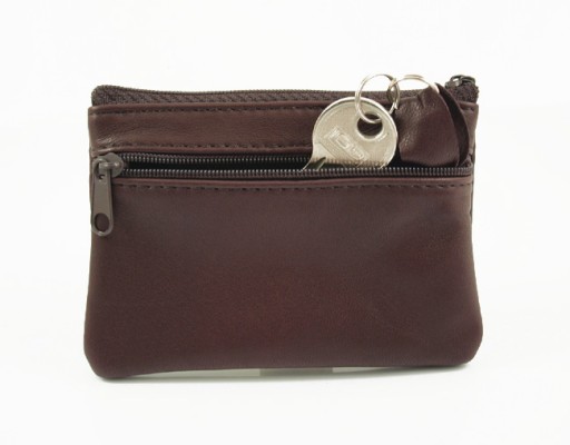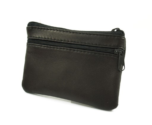 Posiada dwie komory zamykane na zamek. W większej mieści się dowód osobisty, karty bankomatowe i banknoty, w mniejszej jest miejsce na monety lub klucze - przywieszka z metalowym kółkiem.