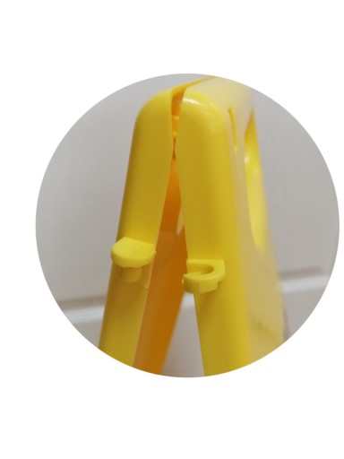 Wykonana z wytrzymałego tworzywa w kolorze żółtym z obustronnym, dwujęzycznym napisem UWAGA! ŚLISKA PODŁOGA (CAUTION! WET FLOOR) oraz znakiem ostrzegającym.