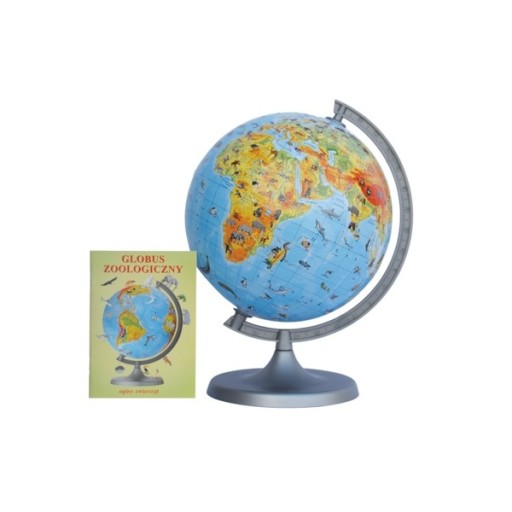 Globus zoo - mapa zoologiczna wyróżnia sie dużą dokładnością narysowanych zwierząt oraz atrakcyjną i żywą kolorystyką, na mapie znajdziemy miejsca występowania poszczególnych gatunków które żyją na naszej planecie.