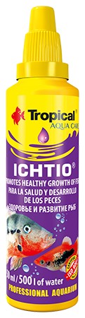 ICHTIO preparat akwarystyczny do akwarium słodkowodnego. Ma szczególne zastosowanie w akwariach, w których pojawiła się ospa rybia spowodowana przez kulorzęska (Ichthyophthirius multifiliis). W miarę możliwości zalecamy kąpiele ryb w osobnym akwarium, co znacznie ułatwia ich obserwację.