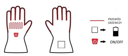 Przycisk do sterowania ogrzewaniem znajduje się na górze rękawicy.
