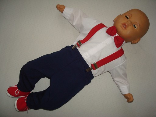 - koszulę typu body+spodnie+muszka+szelki+sweterek .