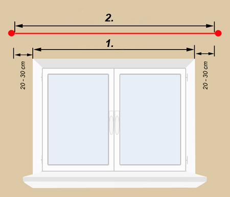 Aby prawidłowo dopasować karnisz do naszego domu powinien on być dłuższy od wnęki okiennej o około 40 - 60 cm.