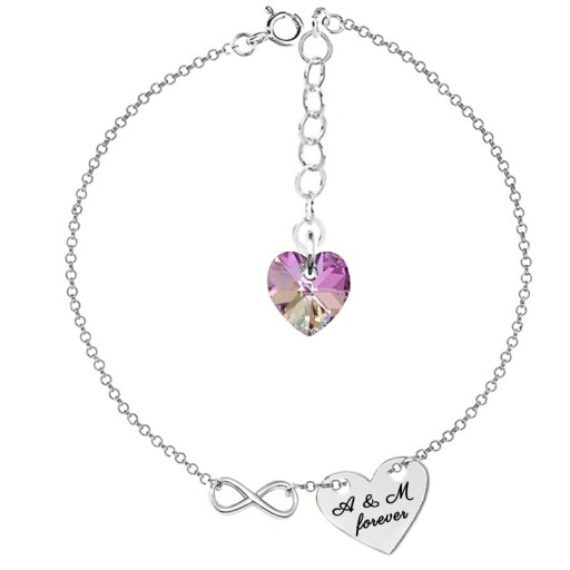 БРАСЛЕТ СЕРДЦЕ БЕСКОНЕЧНОСТЬ SWAROVSKI ГРАВИРОВКА