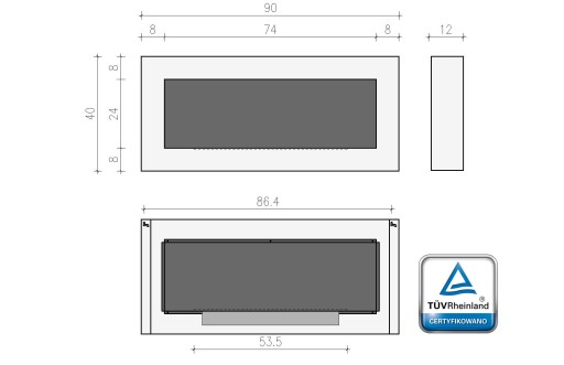 - pełne boki biokominka (wieszamy jak obraz na ścianie bez konieczności zabudowy)