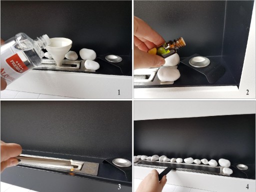- zapalić biokominek za pomocą zapalarki lub długiej zapałki