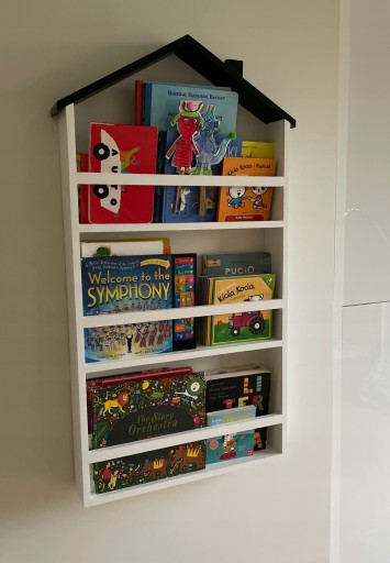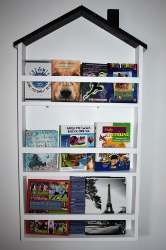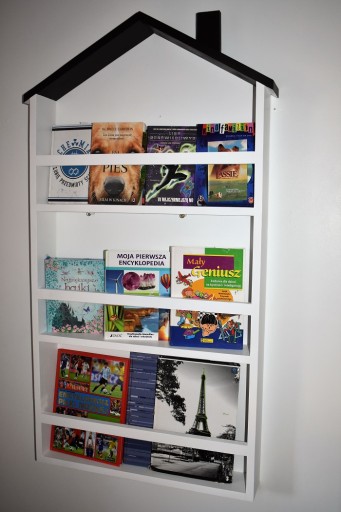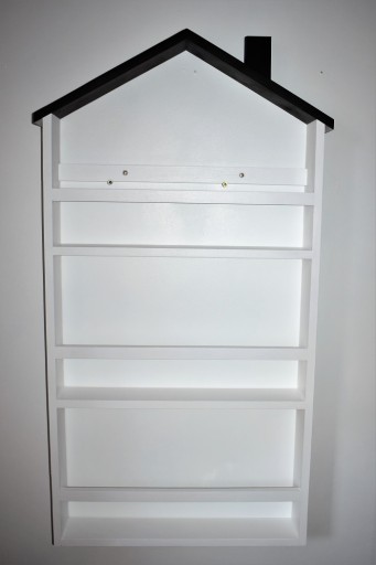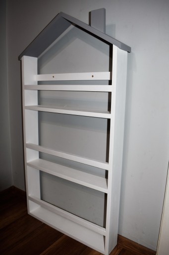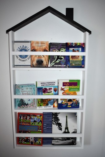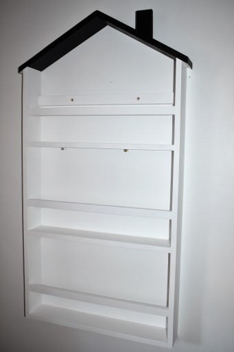 Na sprzedaż mam wiszącą półkę na książki w kształcie domku z kominem,półka została wykonana z litego drewna sosnowego i pomalowana farbą ekologiczną.Półeczka nada uroku pokoju dziewczynki jak i chłopca. Możliwość dorobienia płyty tylnej koszt to 50 zł.