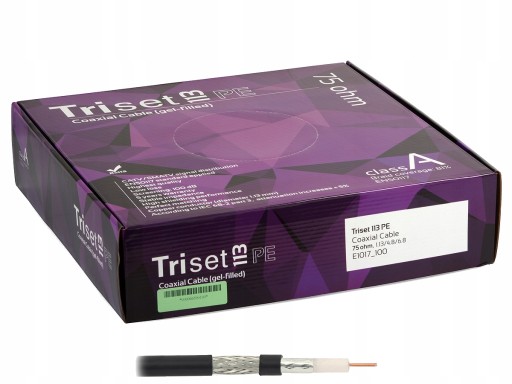 Wysokiej jakości przewód koncentryczny Triset-113 dedykowany zarówno do instalacji indywidualnych jak i zbiorczych. Z powodzeniem może być stosowany w instalacjach naziemnej telewizji cyfrowej DVB-T, radia FM/DAB oraz systemach multiswitchowych (telewizja naziemna DVB-T oraz satelitarna DVB-S/S2). Kabel jest żelowany i wykonany w płaszczu PE (powłoka polietylenowa), jest zatem przeznaczony do zastosowań zewnętrznych.