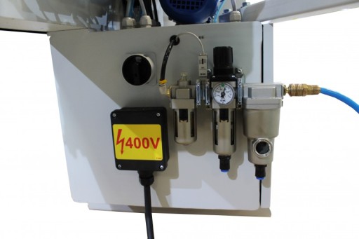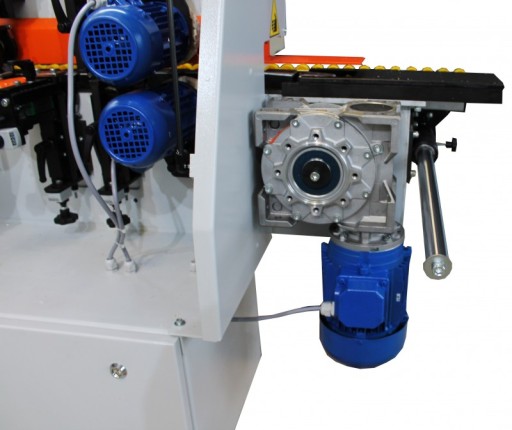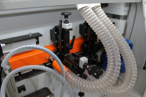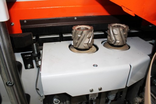- Agregat górnego i dolnego frezowania z pionową i poziomą regulacją na dwóch silnikach (mocowane na łożyskach liniowych) HF 200 Hz, 12000 obr./min. i głowicami frezującymi 75, Z=4; 15, R2 lub R3 mm (opcjonalnie).