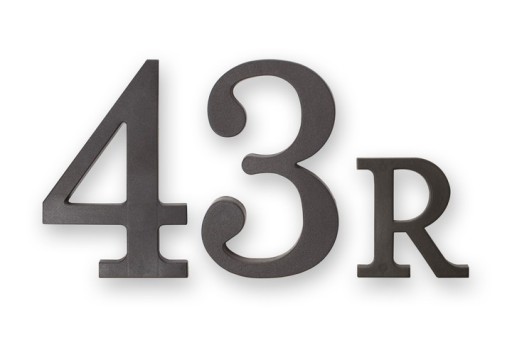 Cyfry przygotowane do powieszenia na elewacji budynku lub innej płaskiej powierzchni przy użyciu załączonych kołków montażowych lub silikonu. Cyfry wykonano z wysokiej jakości tworzywa odpornego na zmienne warunki atmosferyczne.