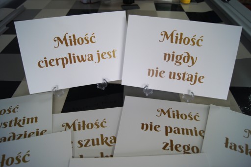 zestaw tabliczek do dekoracji kościoła, domu Panny Młodej, czy sesji zdjęciowych