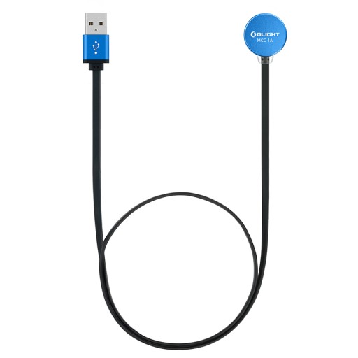 Latarka zasilana jest akumulatorem RCR123, który można ładować za pośrednictwem magnetycznej ładowarki Olight MCC 1A USB (dołączona w zestawie). O poziomie naładowania informuje nas kolor podświetlenia diody widoczny na włączniku: