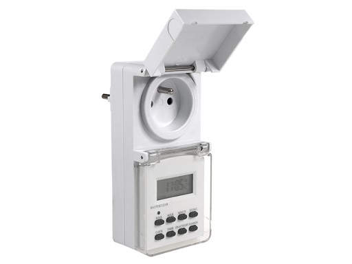Cyfrowy wyłącznik czasowy, dzięki któremu ustawimy czas włączania i wyłączania się urządzeń elektrycznych. Może sterować np. pracą elektrycznego wyposażenia akwarium bądź terrarium, pracą ogrzewaczy wody, oświetlenia oraz wielu innych urządzeń. Timer posiada 10 programów wł/wył, można go dowolnie zaprogramować np. na dany dzień lub cały tydzień. Możliwość pracy zarówno w cyklu 24h jak i tygodniowym. Timer jest przeznaczony do użytku zarówno wewnętrznego jak i zewnętrznego.