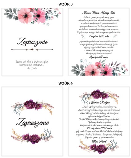 Poniżej prezentujemy wzory wnętrz do wyboru. Wybierają Państwo motyw graficzny oraz tekst. Możliwe jest tworzenie dowolnych kombinacji, czyli np. wybór motywu graficznego ze wzoru 4, a tekstu ze wzoru 1. Dopuszczana jest również zmiana czcionki.