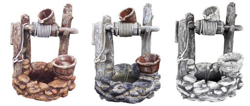 Fontanna zabezpieczona dwuwarstwowym malowaniem – podkład, a następnie gęsta farba, co pozwala zachować oryginalny kolor. Na życzenie klienta pomalujemy studnię na inny wybrany kolor pasujący do ogrodu – poniżej inne kolory fontann: