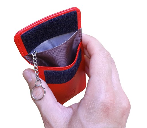Etui posiada dwie kieszonki. Aby zabezpieczyć samochód przed kradzieżą, należy włożyć klucz do srebrnej kieszeni. Czarna kieszeń nie blokuje sygnału. Przekładamy do niej klucz, gdy chcemy korzystać z samochodu, np. podczas otwierania drzwi lub uruchamiania silnika.