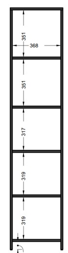 Regał BODO R40Z posiada 4 półki dzielące go na 5 przestrzeni.