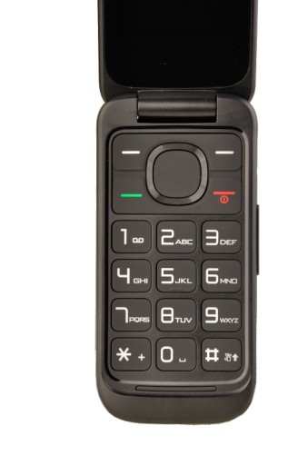 Elegancki, telefon z klapką, z dużym wyświetlaczem o przekątnej 2,4 cala i pojemną baterią.