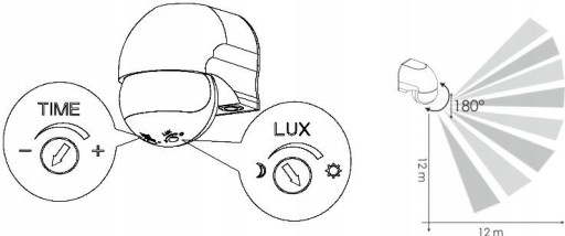 - Po wykonaniu testu należy dostosować ustawienie i kąt nachylenia czujnika, do regulacji czasu i światła.
