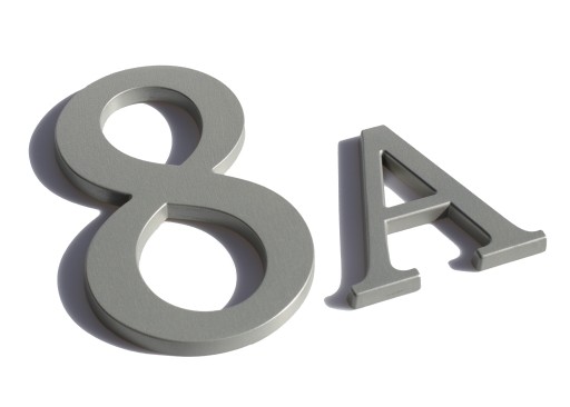 NUMER ALUMINIOWY "8A" - wysokość cyfry 19 cm, wysokość litery 10,5 cm - bardzo atrakcyjne i czytelne zestawienie.