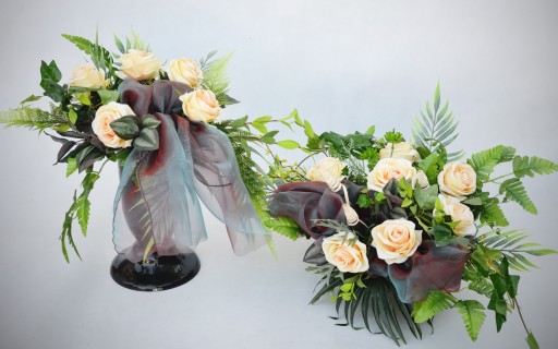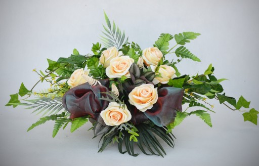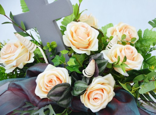 Duża, bogata, piękna wiązanka na grób z najwyższej jakości, sztucznych dodatków florystycznych.