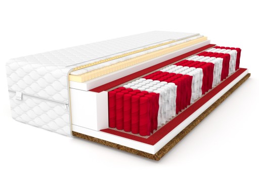 - Kokos lateksowany - surowiec naturalny o właściwościach antygrzybicznych i antyalergicznych, zapewnia cyrkulację powietrza, nadaje twardość i elastyczność, stanowi barierę dla grzybów i roztoczy.