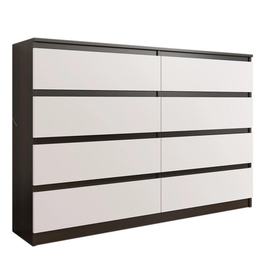 Stylowa komoda z kolekcji MODERN, stworzona dla ludzi, którzy cenią sobie nowoczesny styl i elegancję. Odnowi wnętrze każdej sypialni i salonu. Konstrukcja jest minimalistyczna ale solidna i trwała. Dzięki bez uchwytowym frontom szuflad komoda jest wygodna w użytkowaniu. Ergonomiczne wymiary komody zapewniają swobodę w umeblowaniu pomieszczenia.