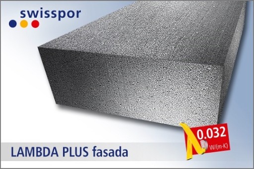 STYROPIAN SWISSPOR LAMBDA PLUS FASADA 0,032 - charakteryzuje się bardzo dobrymi parametrami termoizolacyjnymi w kategorii styropianów fasadowych. W praktyce oznacza to, że przy zachowaniu tej samej izolacyjności, ściany są do 30% cieńsze, niż te docieplone przy użyciu białych styropianów. Ze względu na optymalny stosunek jakości do ceny szary styropian Lambda Plus Fasada 0,032 jest jednym z najpopularniejszych produktów wśród styropianów elewacyjnych.