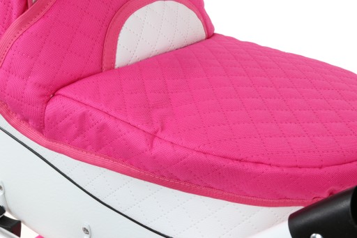 Zastosowana tkanina, oraz wstawki z Eko-Skóry z przeszyciami nie są dostępne w żadnym innym wózku lalkowym.
