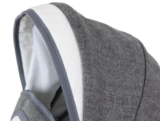 Wózek posiada unikatowe wykończenie z tkaniny "Szary Len", lub " Pikowany Róż"