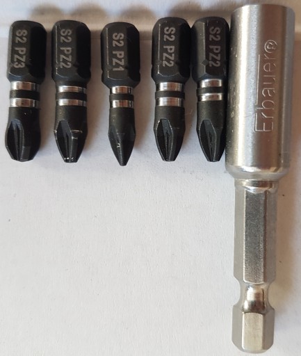 Bity udarowe są wykonane ze stali S2 - baaardzo długa żywotność. Sam uchwyt do bitów z tego zestawu ma wartość min. 9 pln.