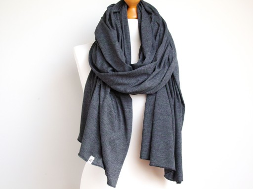 Duży szal z czystej bawełny w kolorze grafitowy melanż. Szal jest miły i miękki w dotyku, bardzo ładnie się układa. Szal uszyty został wysokogatunkowej bawełny. Brzegi zostały obszyte maszynowo, estetyczne wykończenie. Dodatkowo opatrzony jest naszą firmową metką.