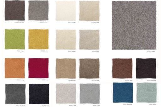 FOCUS - to miękka dzianina. Idealna dla wielbicieli tkanin przyjemnych w dotyku i z miękki włosem. Proponowane poniżej kolory są z kolekcji tkanin łatwoczyszczących. Wybierz kolor dla siebie i ciesz się długim użytkowaniem.