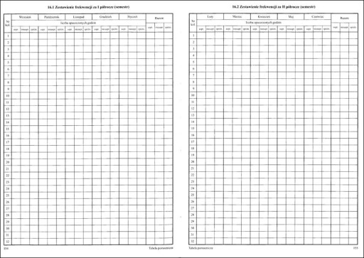 16.2. Zestawienie frekwencji za II okres (semestr).