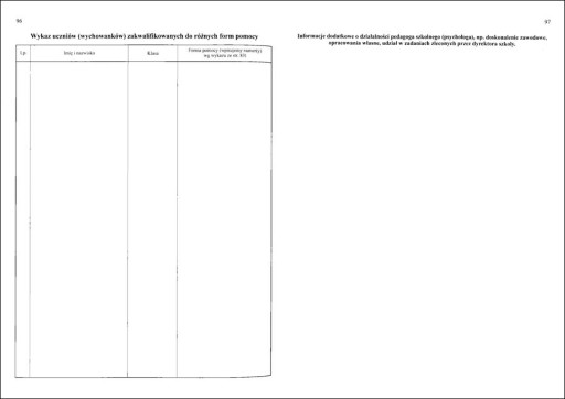 - Wykaz uczniów (wychowanków) zakwalifikowanych do różnych form pomocy.