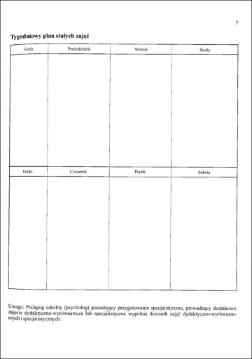 - Tygodniowy plan stałych zajęć.