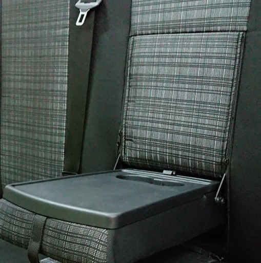 W przypadku naszych pokrowców zostanie zachowana funkcjonalność foteli, tzn będzie można wyciągnąć stoliczek z oparcia podwójnej ławki jak na zdjęciu poniżej.